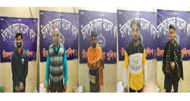 চাঁদপুর মডেল থানার অফিসার ইনচার্জ মোঃ নাসিম উদ্দিনের নির্দেশ মতে বিভিন্ন মামলার ওয়ারেন্টভুক্ত ৫ আসামিকে পুলিশ আটক করেছে।এর মধ্যে সুমন মজুমদার ওরফে লেংটা সুমন রয়েছে।