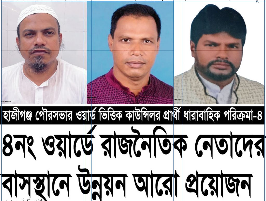 কাউন্সিলর প্রার্থী ও হাজীগঞ্জ বাজার ব্যাববসায়ি সমিতির সাবেক সাংগঠনিক সম্পাদক আবু হেনা বাবলু বলেন, আমি গত নির্বাচনেও অংশ গ্রহন করেছি এলাকাবাসীর কথায়। তখন আমি নতুন থাকার কারনে নির্বাচনী অনেক কৌশল আমি বুঝিনি। বর্তমানে নির্বাচনী কৌশল আমি বুঝেগেছি। এলাকার মানুষও আমাকে কাউন্সিলর প্রার্থী হওয়ার জন্য বলছে। আমি তাদের কথায় এলাকায় ব্যাপক গনসংযোগ শুরু করেছি। এলাকাবাসীও আমাকে ভোট দিতে প্রস্তুত। তিনি আরো বলেন রাজনৈতিক ভাবে এ ওয়ার্ডে যে পরিমান নেতাদের বসবাস সে তুলনায় বর্তমান কাউন্সিল উন্নয়নসহ তেমন কিছু করতে পারেনি। এলাকার মানুষের মন জয় করতে পারেনি। তাই এলাকার মানুষ পরিবর্তন চান। আমি কাউন্সিল নির্বাচিত হলে প্রতিটি বাড়ীতে উন্নয়ন কমিটি, শিক্ষা বিস্তারে কমিটি,সামাজিক সুরক্ষার জন্য কমিটি গঠন করবো। তাদের মাধ্যমে হবে এ ওয়ার্ডে সকল কার্যক্রম। এছাড়াও কোন অসামাজিক কার্যকলাপ করতে দেওয়া হবে না। মাদক বিক্রেতা ও সেবান কারিদেরদেকে ভালো কাজে ফিরিয়ে আনা হবে। থাকবে সকল মানুষের মাঝে নিরাপত্তা।